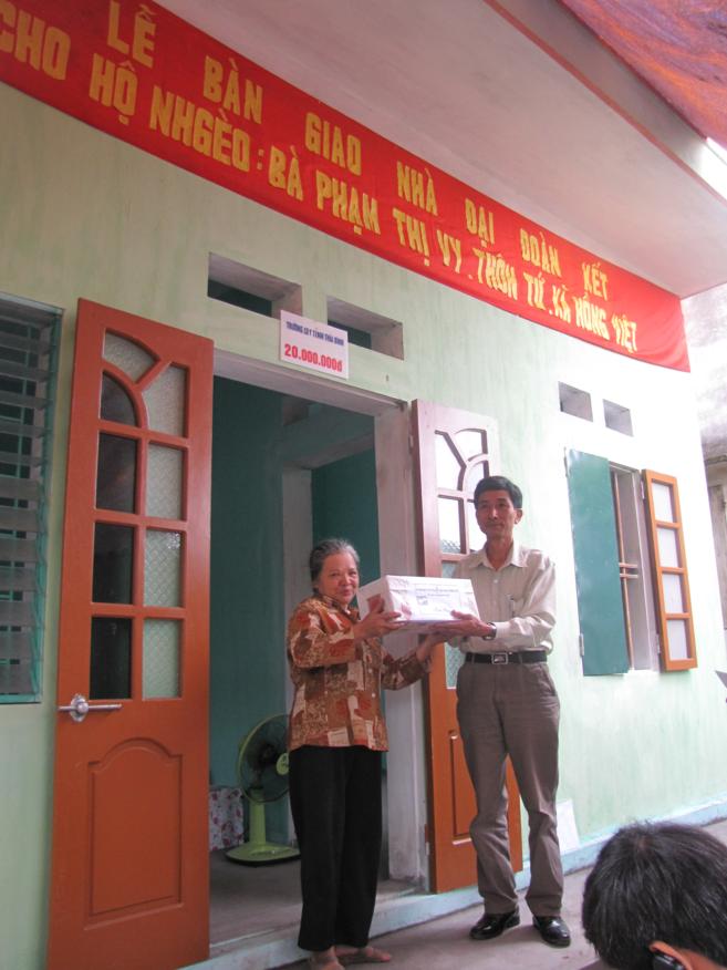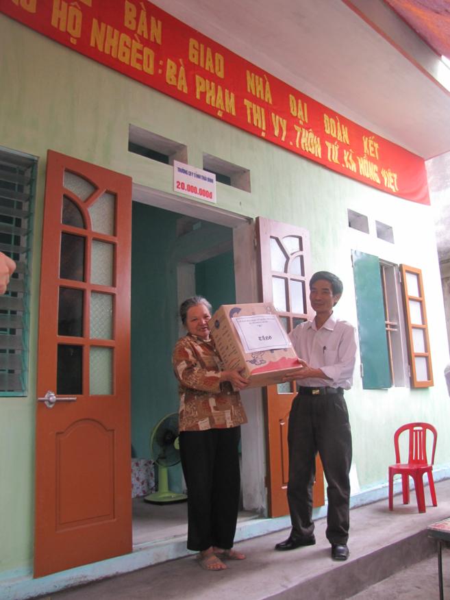Tới dự buổi lễ khánh thành còn có các đồng chí đại diện Ủy ban mặt trận tổ quốc tỉnh, Ủy ban mặt trận tổ quốc huyện Đông Hưng, lãnh đạo xã Hồng Việt, thôn Tứ và gia đình, bà con hàng xóm của bà Phạm Thị Vy. Cảm kích trước tấm lòng của tập thể CBGV và HSSV nhà trường, đại diện lãnh đạo xã, thôn và gia đình bà Phạm Thị Vy đã gửi lời cảm ơn sâu sắc tới toàn thể các thầy ,cô giáo và HSSV trong nhà trường.