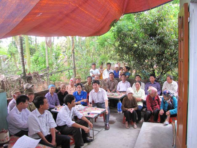Đại diện Ủy ban mặt trận tổ quốc huyện Đông Hưng, lãnh đạo xã Hồng Việt trao quà cho bà Phạm Thị Vy.