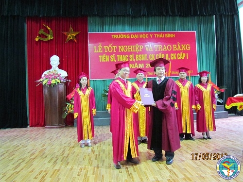 Năm 2012, Nhà trường có 2 đ/c tốt nghiệp tiến sỹ, 2 đ/c đang học cao học, 1 đ/c đang học chuyên khoa II, 1 đ/c đang học chuyên khoa I và 5 đ/c tốt nghiệp chuyên khoa định hướng. Ngày 17/5/2013, Trường Đại học Y Thái Bình đã tổ chức Lễ tốt nghiệp và trao bằng cho các Tiến sỹ, Thạc sỹ, Bác sỹ chuyên khoa II, Chuyên khoa I, Bác sỹ nội trú. Tại buổi lễ, Tiến sĩ Phạm Quang Hòa, bí thư Đảng ủy, Hiệu trưởng đã nhận bằng tốt nghiệp Tiến sĩ chuyên ngành Y tế công cộng