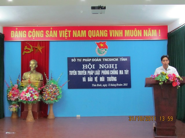 Chiều 31/10/2011 Sở Tư pháp Thái Bình phối hợp với Ban Thường vụ Tỉnh đoàn tổ chức Hội nghị tuyên truyền pháp luật về phòng chống ma túy và bảo vệ môi trường năm 2011 cho các đối tượng thanh niên, HSSV Trường Cao đẳng Y tế Thái Bình.