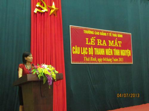 Thực hiện Nghị quyết Đại hội Đại biểu Đoàn trường Cao đẳng Y tế Thái Bình lần thứ XXVI, nhiệm kỳ 2012 - 2014; Hưởng ứng các hoạt động tình nguyện hè năm 2013; Được sự nhất trí của Đảng ủy, Ban Giám hiệu Trường Cao đẳng Y tế Thái Bình, chiều ngày 4/7/2013 Đoàn thanh niên Trường Cao đẳng Y tế Thái Bình đã ra mắt CLB Thanh niên tình nguyện hoạt động xung kích trên các lĩnh vực.