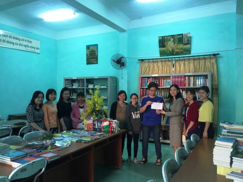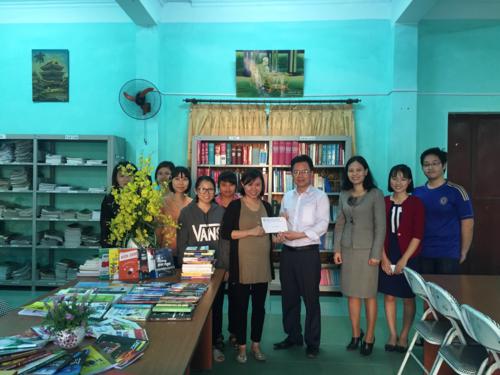 TS Nguyễn Thị Thu Dung - Phó Hiệu trưởng, Chủ tịch công đoàn trao tặng quỹ cho tủ sách