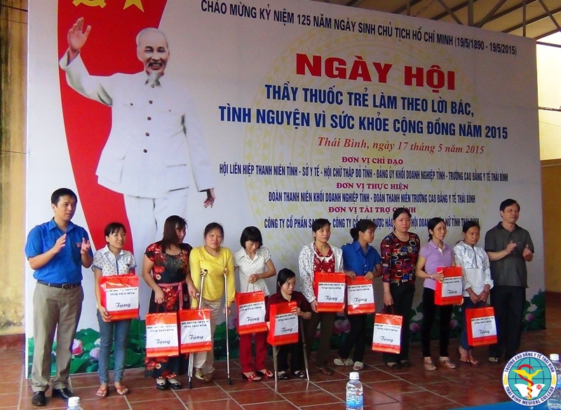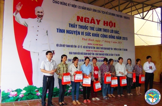 Hướng tới chào mừng kỉ niệm 125 năm ngày sinh Bác Hồ kính yêu, Thực hiện theo chỉ đạo của Bộ Y Tế, Hội LHTN Việt Nam về “Tổ chức ngày hội Thầy thuốc trẻ làm theo lời Bác, tình nguyện vì sức khỏe cộng đồng năm 2015”. Được sự đồng ý của Đảng ủy – Ban giám hiệu nhà trường. Sáng chủ nhật, ngày 17/5/2015 tại Phòng khám Đa Khoa nhà trường, Đoàn trường Cao đẳng Y tế Thái Bình kết hợp với Đoàn khối Doanh nghiệp tỉnh Thái bình đã tổ chức hoạt động tình nguyện khám bệnh, tư vấn sức khỏe và phát thuốc miễn phí cho đối tượng là công nhân nữ các doanh nghiệp trong địa bàn thành phố.