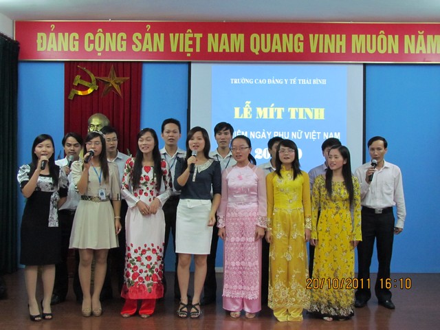Thiết thực lập thành tích chào mừng kỷ niệm 81 năm ngày truyền thống Hội Liên hiệp Phụ nữ việt Nam; nhằm tuyên truyền ý nghĩa, giá trị lịch sử cuộc khởi nghĩa hai bà Trưng, phát động sâu rộng việc nâng cao ý thức trách nhiệm trên lĩnh vực giảng dạy, công tác cho nữ cán bộ, giáo viên Trường Cao đẳng Y tế Thái Bình. Được sự đồng ý của Đảng ủy - Ban Giám hiệu, nhà trường. Chiều 20/10/2011 Ban CH công đoàn Trường cao đẳng y tế Thái bình long trọng tổ chức Lễ mít tinh kỷ niệm 81 năm thành lập Hội phụ nữ Việt Nam 20/10/1930 - 20/10/2011 và 1971 năm khởi nghĩa Hai bà Trưng.