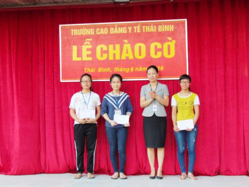 Trong buổi Lễ chào cờ, nhà trường đã trao cờ thi đua và tiền thưởng 100.000 đồng cho tập thể lớp CĐ Điều dưỡng K7F dẫn đầu thi đua trong tháng 3/2016 với số điểm 79,6/100 điểm; tập thể lớp CĐ Dược K1A dẫn đầu thi đua trong tháng 4/2016 với số điểm 79/100 điểm; tập thể lớp CĐ Dược K1B dẫn đầu thi đua trong tháng 5/2016 với số điểm 79/100 điểm.