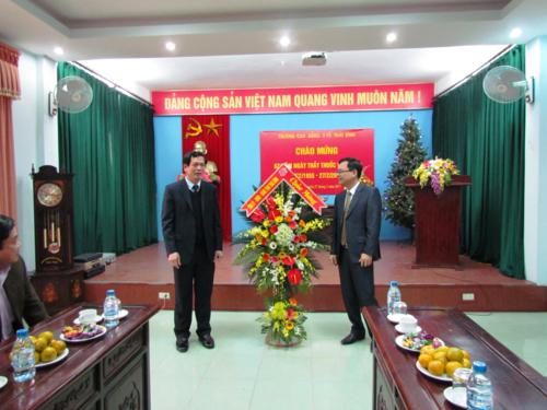 thay mặt các đồng chí lãnh đạo tỉnh đến tặng hoa chúc mừng Nhà trường