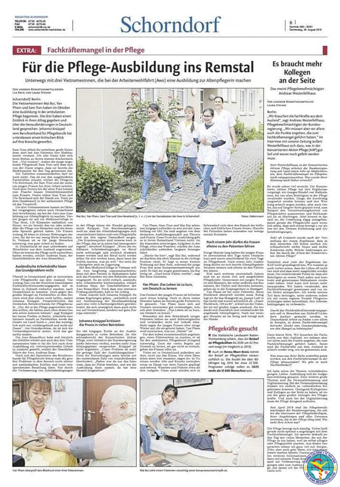 Báo Schorndorf (Berlin) Đức có bài viết về những sinh viên điều dưỡng trường Cao đẳng Y tế Thái Bình đang làm việc chăm sóc tại nhà tai nước Đức