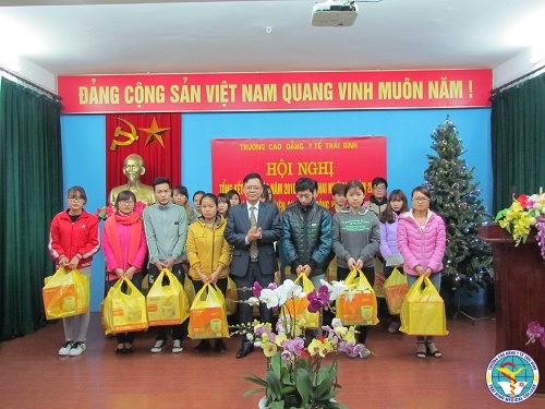 Tại Hội nghị tổng kết, nhà trường trao quà Tết cho 21 em HSSV có hoàn cảnh khó khăn đang theo học tại trường.