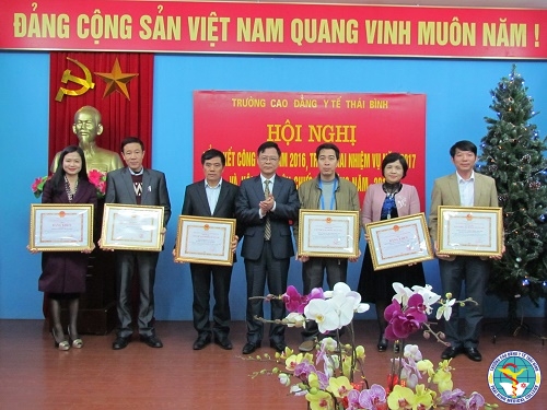 Tại Hội nghị, đồng chí Bí thư Đảng ủy - Hiệu trưởng trao bằng khen, giấy khen cho các tập thể, cá nhân có nhiều đóng góp cho Nhà trường và đồng chí Chủ tịch Công đoàn cũng trao giấy khen của Công đoàn Ngành Y tế cho các tập thể và các nhân có nhiều thành tích trong các phong trào thi đua.