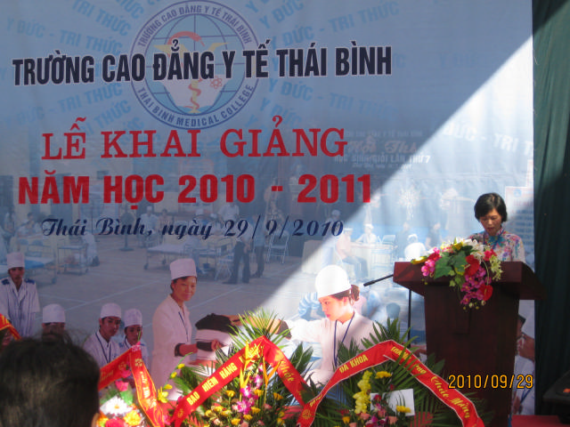 Tới dự lễ khai giảng, thầy thuốc nhân dân, Bác sĩ CKII Nguyễn Trọng Bình, tỉnh ủy viên, giám đốc Sở Y tế tặng hoa chúc mừng nhà trường , đánh giá cao những kết quả trường đã thực hiện được trong những năm qua và nhấn mạnh một số nhiệm vụ trọng tâm của trường trong năm học 2010-2011.