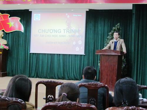 Thay mặt cho lãnh đạo nhà trường BSCKII. Nguyễn Đình Trọng - Phó Hiệu trưởng đã phát biểu động viên khích lệ các bạn sinh viên, học sinh luôn cố gắng phát huy tốt trong học tập và rèn luyện đồng thời chúc các em cùng gia đình đón một mùa xuân mới vui vẻ, an toàn, tiết kiệm và ý nghĩa./.