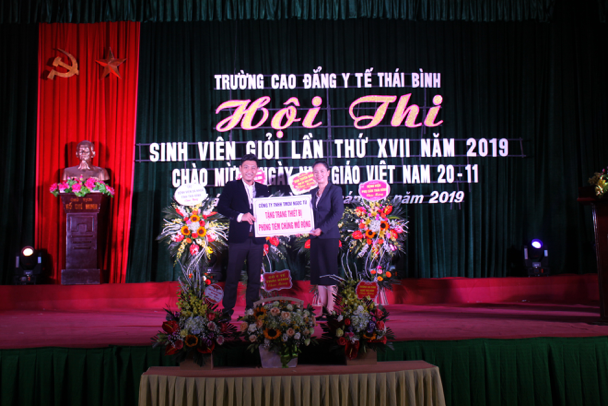 Cũng trong dịp này, Công ty TNHH TMDV Ngọc Tú cũng có những phần quà ý nghĩa ủng hộ quỹ hỗ trợ sinh viên một phần quà là 10 triệu đồng, ủng hộ quỹ Chào thiện nguyện – chia sẻ yêu thương 20 triệu đồng và tặng trang thiết bị Phòng tiêm chủng mở rộng cho nhà trường.