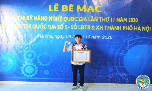Thí sinh Đinh Đức Thiện lớp CĐĐD CQK10 nhận huy chương Đồng Kỳ thi kỹ năng nghề Quốc gia 2020