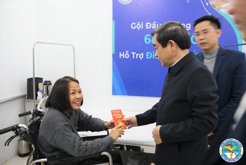 Đồng chí Nguyễn Tiến Thành - Phó Bí thư Thường trực Tỉnh ủy, Chủ tịch HĐND tỉnh Thái Bình tặng quà cho bệnh nhân đang điều trị tại Bệnh viện trường