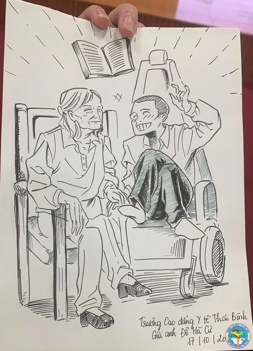 Sinh viên Trường Cao đẳng Y tế Thái Bình xúc động vẽ tranh tặng anh Đỗ Hà Cừ ngay trong buổi giao lưu