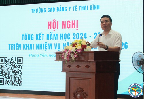 Ngày 28/7/2025, Trường Cao đẳng Y tế Thái Bình đã tổ chức Hội nghị Tổng kết năm học 2024 - 2025 và triển khai nhiệm vụ năm học 2025 - 2026. Hội nghị là dịp để Nhà trường nhìn lại những thành tựu đã đạt được trong năm học vừa qua, đồng thời đề ra phương hướng và nhiệm vụ trọng tâm cho năm học mới.