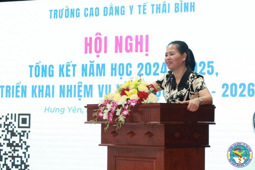Phát biểu chỉ đạo và tổng kết Hội nghị, TS. Nguyễn Thị Thu Dung - Hiệu trưởng Nhà trường đánh giá cao những nỗ lực của toàn thể cán bộ, giảng viên, sinh viên trong năm học vừa qua và nhấn mạnh tầm quan trọng của việc thực hiện tốt các nhiệm vụ trong năm học 2025 - 2026 để tiếp tục nâng cao chất lượng đào tạo, khẳng định vị thế của Trường Cao đẳng Y tế Thái Bình.