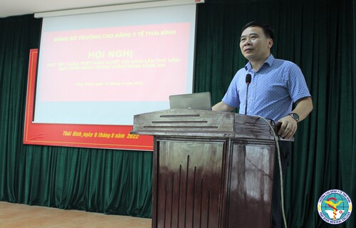 Ngày 10/8/2022, Đảng bộ Trường Cao đẳng Y tế Thái Bình tổ chức Hội nghị nghiên cứu, học tập, quán triệt Nghị quyết Hội nghị lần thứ năm Ban Chấp hành Trung ương Đảng khóa XIII.