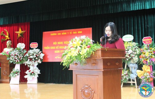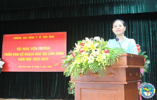 TS. Nguyễn Thị Thu Dung, Bí thư Đảng ủy, Chủ tịch Hội đồng trường, Hiệu trưởng phát biểuPhát biểu tại Hội nghị, TS. Nguyễn Thị Thu Dung, Bí thư Đảng ủy, Chủ tịch Hội đồng trường, Hiệu trưởng bày tỏ lòng biết ơn sâu sắc đến sự quan tâm lãnh đạo của Sở Y tế; các bệnh viện, Trung tâm y tế trong tỉnh đã luôn chỉ đạo và tạo điều kiện cho Trường hoàn thành tốt nhiệm vụ trong thời gian qua. Đồng thời qua Hội nghị tiếp thu các ý kiến đóng góp, trao đổi thẳng thắn của các đại biểu đến từ các bệnh viện nhằm trao đổi kinh nghiệm, cùng tháo gỡ các khó khăn, vướng mắc giúp công tác đào tạo giữa nhà trường với các bệnh viện trong tỉnh ngày càng phát triển bền vững, phục vụ ngày càng tốt hơn nhu cầu học tập của người học, đóng góp có hiệu quả cho sự nghiệp đào tạo cán bộ y tế tỉnh Thái Bình.