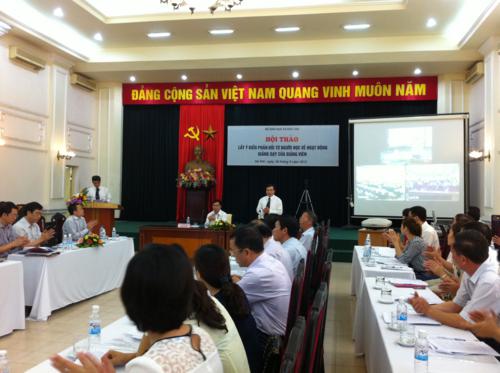 Phát biểu trực tiếp tại Hội thảo, các ý kiến tham luận đều thống nhất cho rằng, việc lấy ý kiến phản hồi từ người học về hoạt động giảng dạy của giảng viên là rất cần thiết và cần tiến hành thường xuyên. Để việc lấy ý kiến phản hồi từ người học về hoạt động giảng dạy của giảng viên đạt hiệu quả tốt, Cục Nhà giáo và Cán bộ quản lý cơ sở giáo dục đề xuất một số ý kiến: