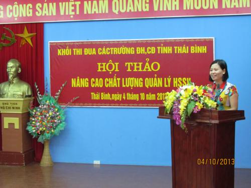 Trong buổi làm việc, TS Nguyễn Thị Thu Dung - Phó Hiệu trưởng thay mặt cho Ban Giám hiệu Trường Cao đẳng Y tế Thái Bình đã trình bày báo cáo tình hình thực hiện công tác quản lý học sinh, sinh viên năm học 2012 - 2013, đưa ra phương hướng và các giải pháp quản lý học sinh, sinh viên năm học 2013 - 2014. Số lượng học sinh, sinh viên tuyển mới vào Trường Cao đẳng Y tế Thái Bình hàng năm từ 1.000 đến 1.100 HSSV. Năm học 2012 - 2013 số lượng HSSV học tập tại trường là 2.640 HSSV đến từ nhiều tỉnh, thành trong cả nước. Hàng năm Nhà trường đăng ký 500 chỗ ở khu Ký túc xá của tỉnh, chỉ đáp ứng được khoảng 30% nhu cầu chỗ ở cho HSSV. Ngoài việc học tập lý thuyết và thực hành tiền lâm sàng tại trường; học sinh, sinh viên Trường Cao đẳng Y tế Thái Bình còn phải tham gia học tập, thực tập, thực tế tại các Bệnh viện, công ty cổ phần dược vật tư y tế trong và ngoài tỉnh. Do đó công tác quản lý HSSV của trường gặp nhiều khó khăn.