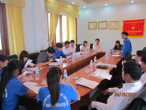 Cũng trong chiều ngày 04/10/2013 tại Phòng họp giao ban của Trường Cao đẳng Y tế Thái Bình diễn ra Hội nghị giao ban công tác Đoàn và phong trào Thanh niên khối trường Đại học, Cao đẳng - quý IV năm 2013. Đại diện Ban Thường vụ Tỉnh đoàn, đồng chí Đặng Thị Chiên - Phó Bí thư Tỉnh đoàn chủ trì hội nghị.