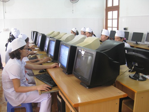 Các thí sinh thi trắc nghiệm lý thuyết trên máy tính