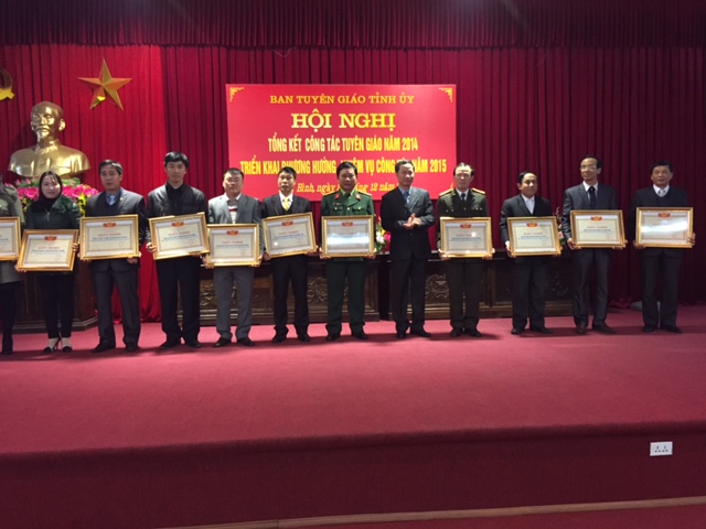 Sáng ngày 23/12/2014, tại Trung tâm Thông tin công tác tuyên giáo, Ban Tuyên giáo Tỉnh ủy tổ chức hội nghị tổng kết công tác tuyên giáo năm 2014, triển khai nhiệm vụ công tác năm 2015. Tới dự và chỉ đạo hội nghị có đồng chí Nguyễn Hồng Diên, Phó Bí thư thường trực Tỉnh ủy, Chủ tịch HĐND tỉnh cùng các đồng chí trong Ban Thường vụ Tỉnh ủy.