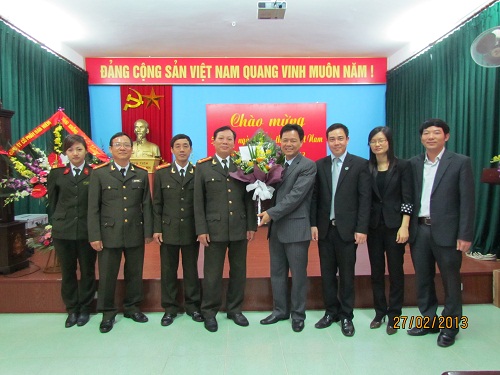 Các đ/c lãnh đạo Tỉnh đoàn, công an Thành phố TB chúc mừng nhà trường