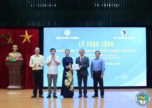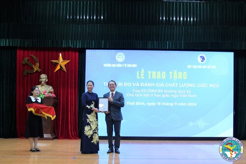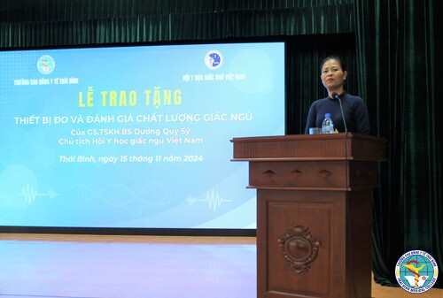 Sáng ngày 15/11/2024, GS. TSKH.BS Dương Quý Sỹ đã thay mặt Hội Y học giấc ngủ Việt Nam trao tặng thiết bị đo và đánh giá chất lượng giấc ngủ cho Trường Cao đẳng Y tế Thái Bình. Đến dự buổi lễ về phía đại biểu khách mời có GS.TS. Dương Quý Sỹ, Ủy viên Hội đồng Quốc gia Giáo dục & Phát triển Nhân lực Việt Nam, Chủ tịch Hội Y học giấc ngủ Việt Nam, Phó Chủ tịch Hội Hô hấp Việt Nam, Phó Hiệu trưởng Trường Cao đẳng Y tế Lâm Đồng cùng Ban Lãnh đạo Trường Cao đẳng Y tế Lâm Đồng. Về phía nhà trường có TS. Nguyễn Thị Thu Dung, Bí thư Đảng ủy, Chủ tịch Hội đồng trường, Hiệu trưởng, Chủ tịch Chi hội Y học giấc ngủ tỉnh Thái Bình; BSCKII. Nguyễn Đình Trọng, Phó Hiệu trưởng; các thầy cô giảng viên, sinh viên nhà trường.