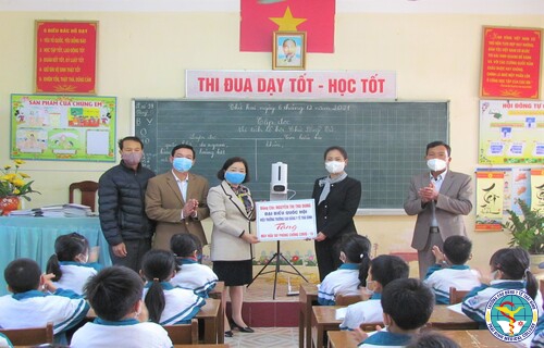 Trao tặng thiết bị phòng, chống dịch Covid-19 cho Trường tiểu học Quỳnh Hội