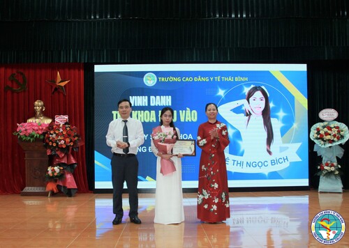 Lễ khai giảng cũng là dịp để nhà trường vinh danh những tài năng trẻ. Nhân dịp này, Trường Cao đẳng Y tế Thái Bình cũng đã vinh danh và khen thưởng các cá nhân có thành tích xuất sắc, bao gồm: 05 sinh viên đại diện cho các ngành học có điểm xét tuyển đầu vào cao nhất; 02 sinh viên có thành tích học tập xuất sắc năm học 2024 - 2025; 01 sinh viên có nhiều đóng góp cho công tác đoàn và phong trào thanh niên. Họ chính là minh chứng sống động cho thế hệ sinh viên năng động, đổi mới, sáng tạo của nhà trường.