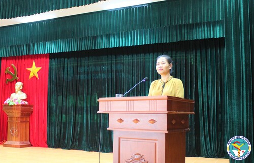 TS. Nguyễn Thị Thu Dung, Bí thư Đảng ủy, Chủ tịch Hội đồng trường phát biểu giao nhiệm vụ