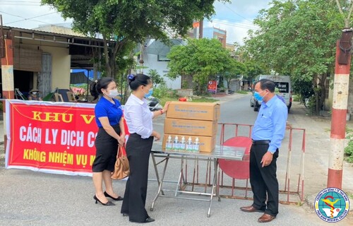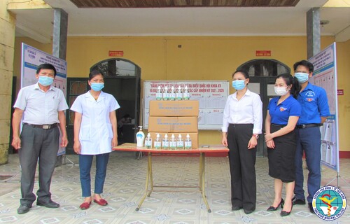 Trao tặng dung dịch rửa tay nhanh cho xã Vũ Đông, thành phố Thái Bình