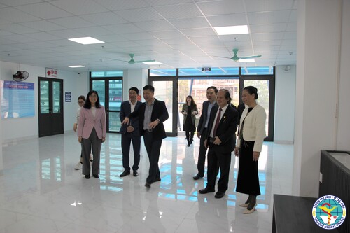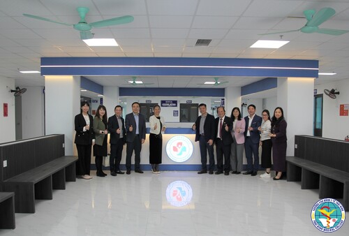 Đoàn công tác Trường Đại học Y Dược, Đại học Quốc gia Hà Nội thăm cơ sở vật chất Bệnh viện trường và chụp ảnh lưu niệm cùng cán bộ Nhà trường