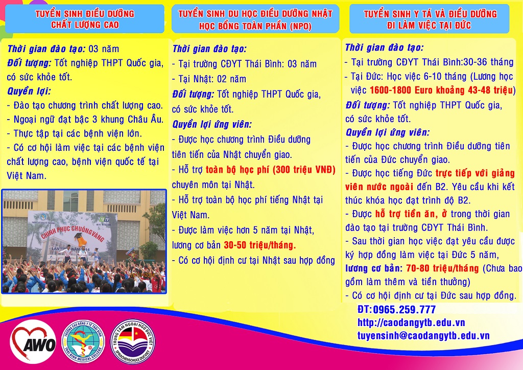 Trường Cao đẳng Y tế Thái Bình thông báo tuyển sinh Cao đẳng chính quy năm 2019, cụ thể như sau: