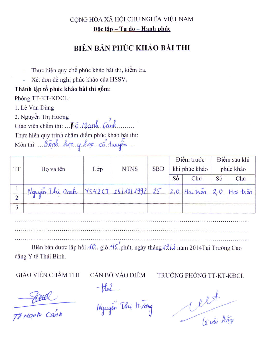 | 16 | Nguyễn Thị Thu Trang | 01/10/1993 | 3 | 0 | 6 | 6 | 4.5 |
