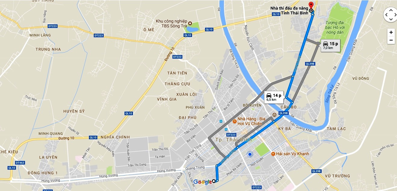 Sơ đồ đường đi từ Trường CĐYT Thái Bình đến nhà thi đấu đa năng tỉnh Thái Bình
